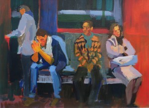 Boceto para cuadro del Metro con mujer pensativa